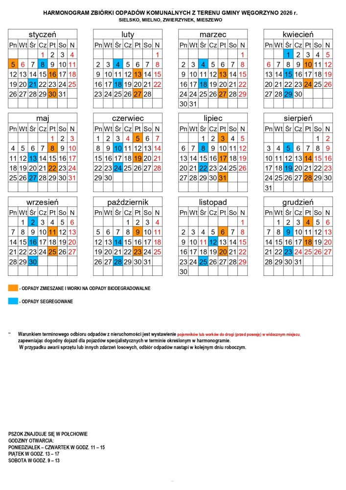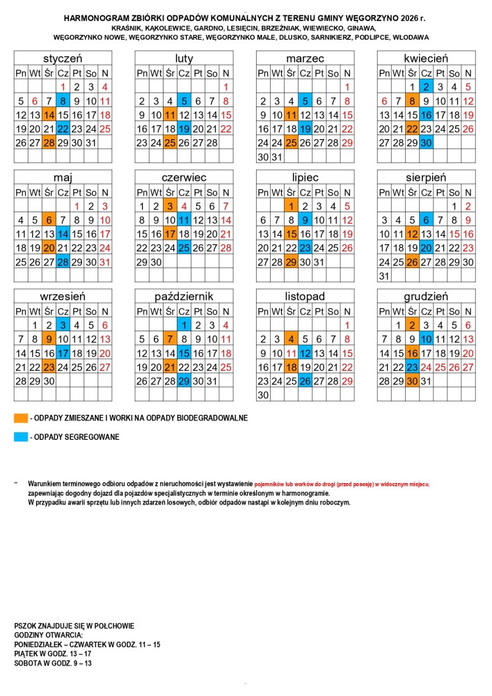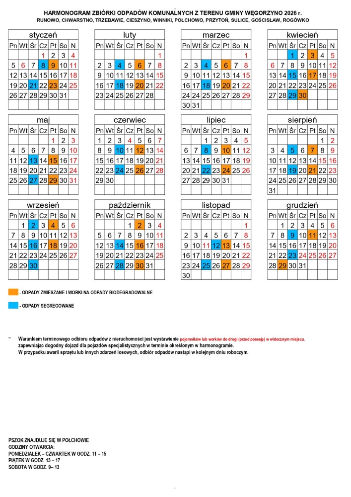 HARMONOGRAM ODBIORU ODPADÓW GMINA WĘGORZYNO 2026